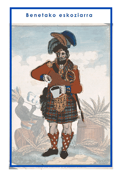 Mikelek esaten du eskoziar batek ere ez diola azukrerik botatzen kafeari. Solaskideak erantzuten dio bere osaba Angus eskoziarra dela eta azukrea botatzen diola; orduan, Mikelek lehen adierazi duenari beste elementu bat eransten dio, «ez da benetako eskoziarra » erantzutean.