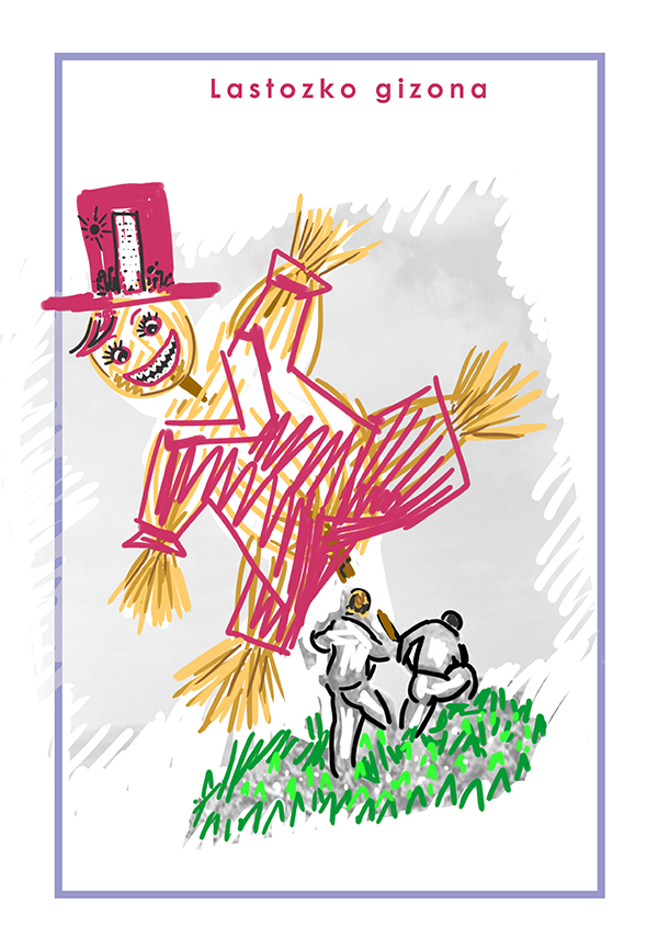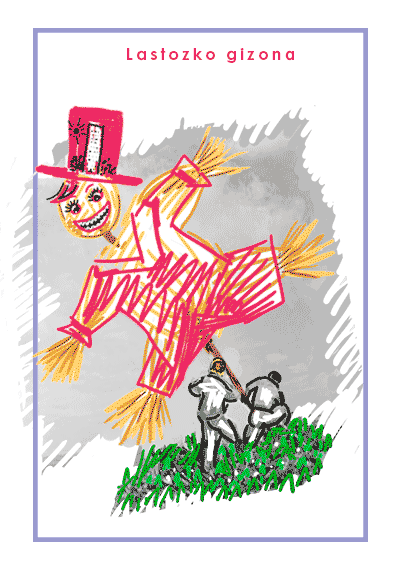 Jonek dutxatzea onuragarria dela esaten badu eta Anderrek oso ur beroarekin dutxatzea azalarentzat kaltegarria dela erantzuten badio, Anderrek lastozko gizon bat «altxatu» du, Jonek ez baitu ur oso beroarekin dutxatuko denik esan.