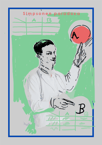 A tratamenduak prozedura kirurgiko irekiak eta B tratamenduak prozedura kirurgiko itxiak barne hartzen ditu. Parentesi arteko zenbakiek taldearen guztizko tamainarekiko arrakasta-kasuen kopurua adierazten dute. Ondorio paradoxikoa da A tratamendua eraginkorragoa dela kalkulu txikietan zein handietan erabiltzen denean, nahiz eta B tratamendua eraginkorragoa den bi tamaina horiek aldi berean hartzen direnean. Kasu honetan, ez zekiten «ezkutuko» aldagaia (edo nahasmen-faktorea), «kalkuluaren tamaina», garrantzitsua zenik haren ondorioak aztertu zituzten arte.